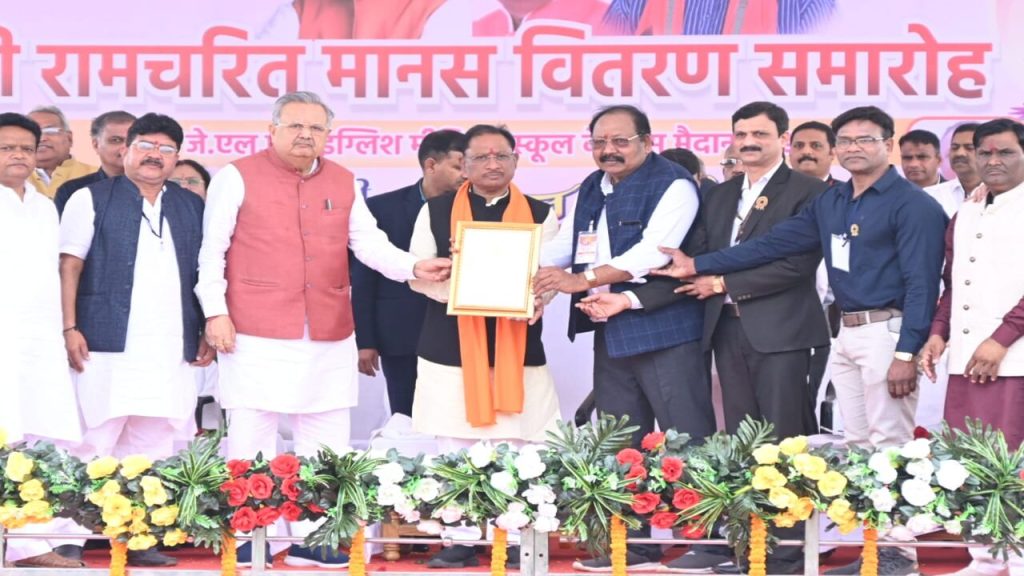 इस मौके पर मुख्यमंत्री विष्णुदेव साय ने श्रीराम की जयकार के साथ कहा, “मैं कांकेर सांसद मोहन मंडावी को रामायणी सांसद कहूंगा. उन्हें हीरो कहूँगा, उन्होंने मानस वितरण को लेकर बहुत अच्छा काम किया है.” इस दौरान सीएम विष्णुदेव साय ने बालोद जिले में 173 करोड़ रुपए से अधिक की लागत की योजनाओं का लोकार्पण भूमिपूजन किया.