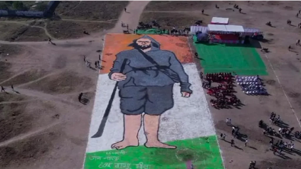 टंट्या मामा भील के जन्मदिन पर 15000 वर्ग स्क्वायर फीट में कलाकारों ने इस आकृति को बनाया है. विश्व की सबसे बड़ी इस आकृति को 6 कलाकारों ने मिलकर 2 दिन में बनाया है. कलाकारों ने टंट्या मामा भील की आकृति को तिरंगे के रंगों के साथ तैयार किया है. आपको बता दें कि मध्यप्रदेश में हुए आजादी के आंदोलन में टंट्या मामा भील का नाम सबसे ऊपर आता है. उन्होंने आदिवासी इलाकों में लोगों के बीच जागरूकता अभियान भी चलाया. आज भी मालवा-निमाड़ में लोग उन्हें जननायक के रूप में पूजते हैं. गौरतलब है कि उनका जन्म 26 जनवरी 1842 को आदिवासी परिवार में हुआ था. आजादी के आंदोलन में भाग लेते भक्त ही वो वीरगति को प्राप्त हो गए थे.